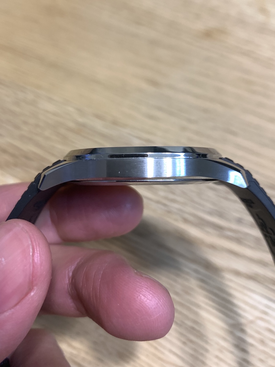 The bezel is satin finished immediately adjacent to the sapphire crystal and is prone to scratches although the watch is protected by its thinness and lack of protrusion.