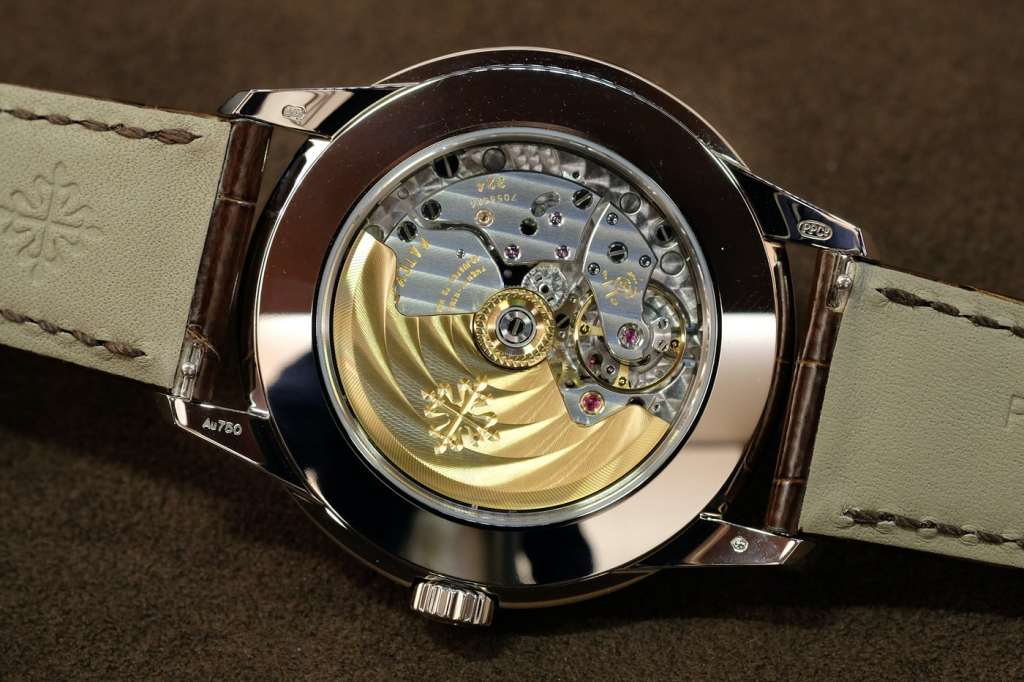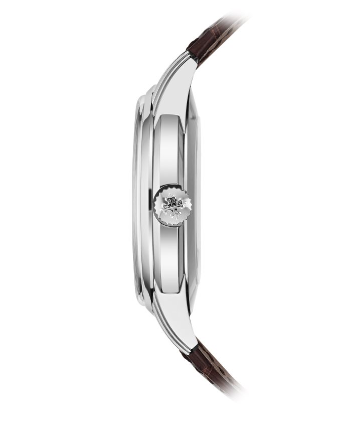 The 5320g is 40mm in diameter and 11.1mm in thickness. I find it a tad too thick for a vintage Patek but of average thickness for a modern Patek. Because of the tapered bezel and layered lugs, wearing the watch doesn’t feel bulky or thick and has a quite airy feel to it. The day month and moon phase pushers are hidden at the 12 o’clock and 6 o’clock sides of the case which I prefer to the traditional side positions at 3 and 9 o’clock.