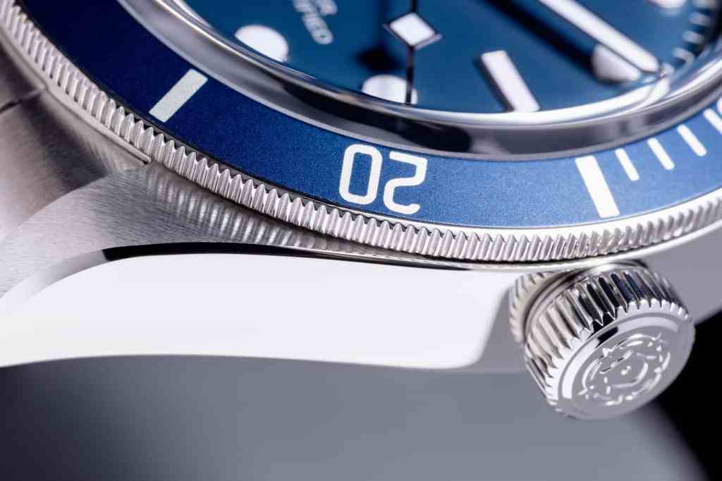 It is a watch that has a retro feel to it. The lugs are tapered more than the Rolex Submariner and the bezel is tapered more peripherally which I prefer as opposed to the less tapered Rolex ceramic bezels. I also prefer the more refined knurlings compared to the Rolex knurlings.