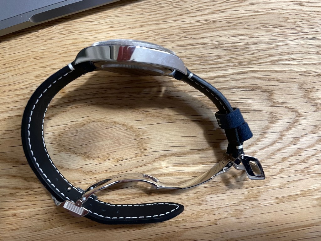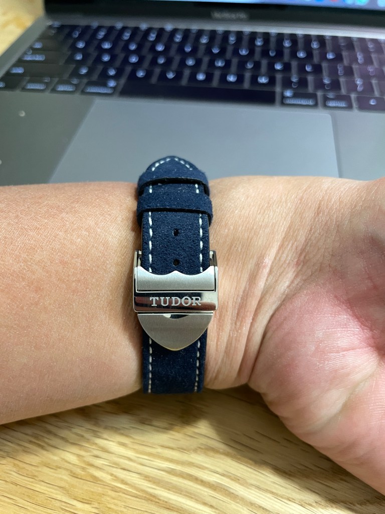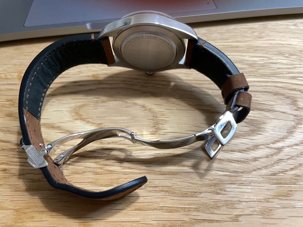 The blue Bay 58 originally came on the factory blue NATO strap but I replaced it with the factory “soft touch” leather strap. I find this blue strap much more beautiful and refined than the brown factory leather strap that comes with the black Black Bay 58. The blue one is softer as the name suggests but at the same time provides the tenting effect of the case that was described before. It also comes on the same Tudor factory deployant clasp which I find indispensable on watches nowadays and I wouldn’t wear a watch on any other buckle mechanism.