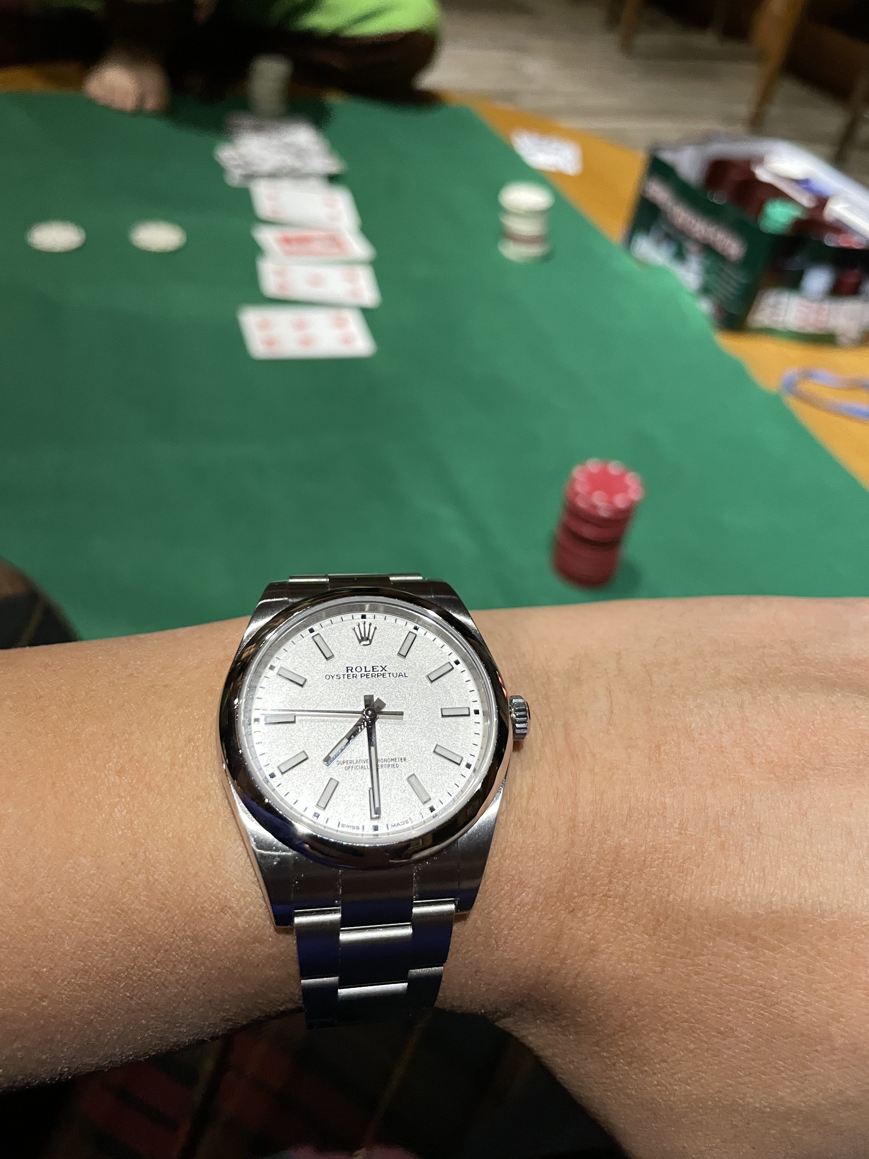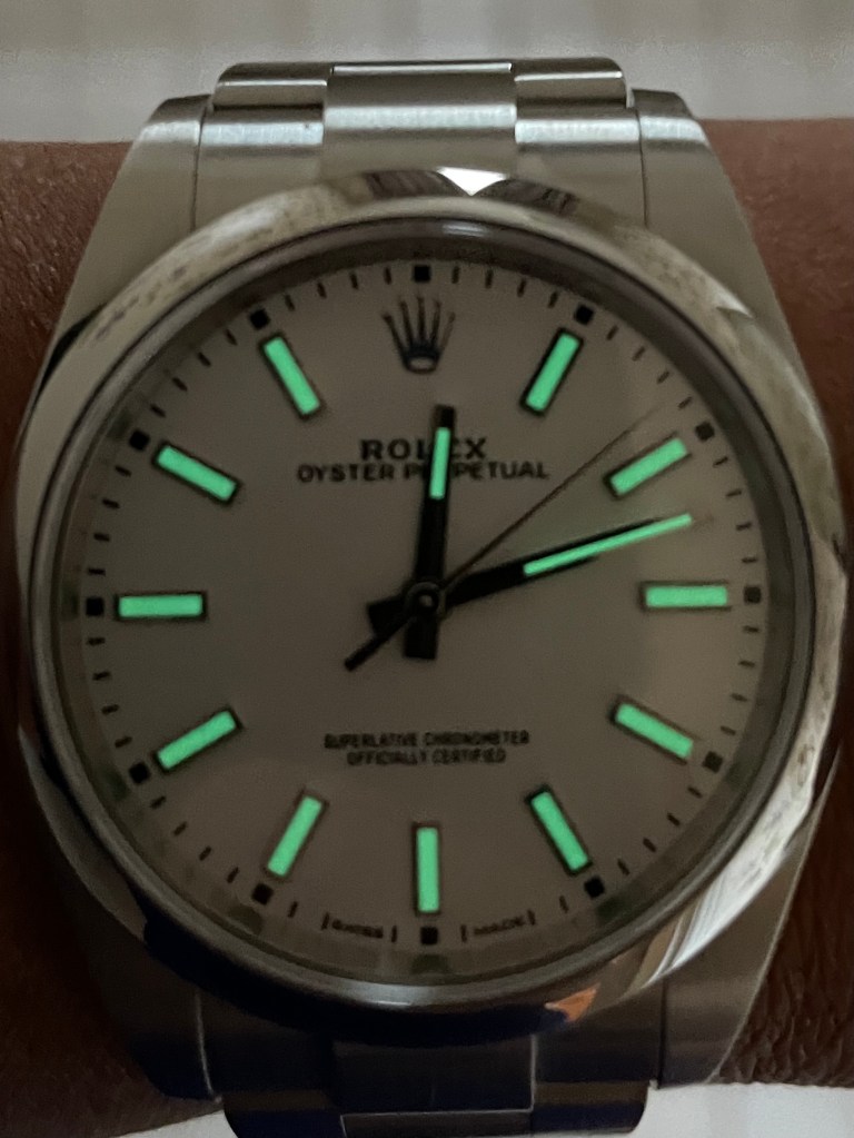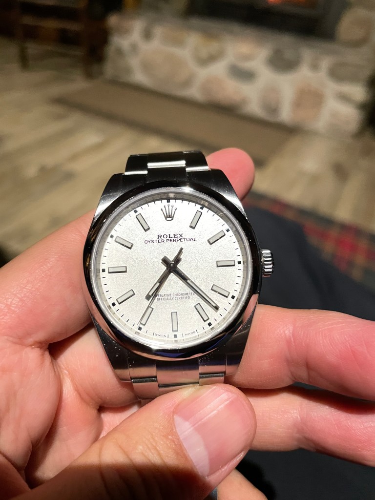 I had never put my name down on the list at an AD for this watch even though I wanted it because I thought it wasn’t as desired as the other Rolex steel sports models and would not be as difficult to obtain, so no real rush. I couldn’t have been more wrong because as of Sept 1, 2020, of course, Rolex discontinued all 39mm OP models and introduced the multi-coloured 41mm models with the new 3230 70 hr movement. Had they introduced the new OP 41 with a white dial, I would not have felt such a sense of urgency since I could have a chance to obtain a white 41. But then I pondered about whether I really wanted to wear a larger 41 mm OP and even though I had never tried an OP 41 on the wrist, I decided that I would prefer to wear a 39mm OP and specifically the white dial.
